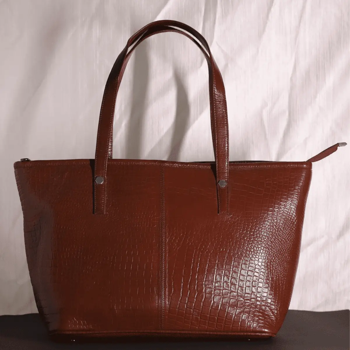 Immerse yourself in the timeless elegance and practical luxury of the Leather Brown Tote Bag for women, a flawless fusion of style and functionality. Crafted from supple, high-quality leather in a rich, earthy brown hue, this tote epitomizes sophistication. Its smooth exterior and impeccable stitching showcase the meticulous craftsmanship that defines artisanal leather goods. The spacious interior is lined with a luxurious fabric, offering ample room for daily essentials and more, making it ideal for both work and leisure. Thoughtfully designed with multiple compartments and pockets, including a secure zip closure, it ensures effortless organization and easy access to belongings. The sturdy leather handles provide a comfortable grip, while an optional shoulder strap adds versatility for hands-free wear. Finished with subtle, refined details such as metal hardware accents and discreet branding, the Leather Brown Tote Bag is a statement piece that transcends trends, promising to complement any ensemble with its understated yet unmistakable charm. Whether strolling through city streets or attending meetings, this tote is a testament to timeless sophistication and practical luxury, destined to become a cherished companion for the modern woman.